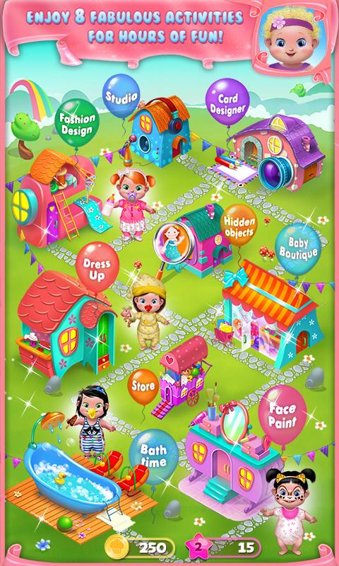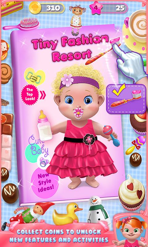 Welcome to Tiny Fashion Resort! Experience this adorable village in a special new way with new added features! In-game currency & levels create hours of extra fun! Use beauty tools special to the babies, like baby oil, and design their baby fashion with adorable accessories!