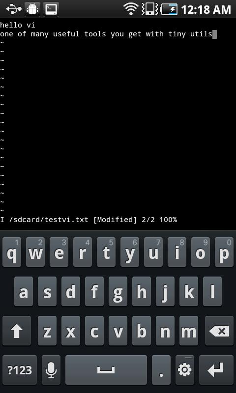 Tiny Utils installs BusyBox, microperl (a small perl interpreter), patchelf, frotz (so you can play Z code interactive fiction games) and dropbear an SSH client and server. Tiny Utils also includes the Android Terminal Emulator within it, so you have a nice, proven work environment where you can use all this capability.