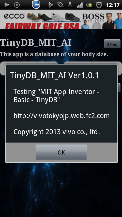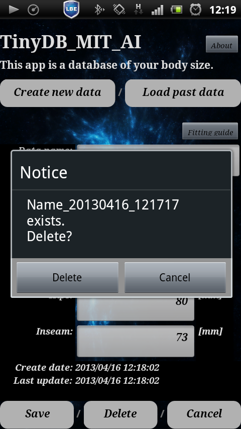 Now, as an example of the use TinyDB, I tried to produce an app that body size or recording information, or to edit. Not only for yourself, if you record the information on the size of the whole family, you can take advantage of when you might be shopping.