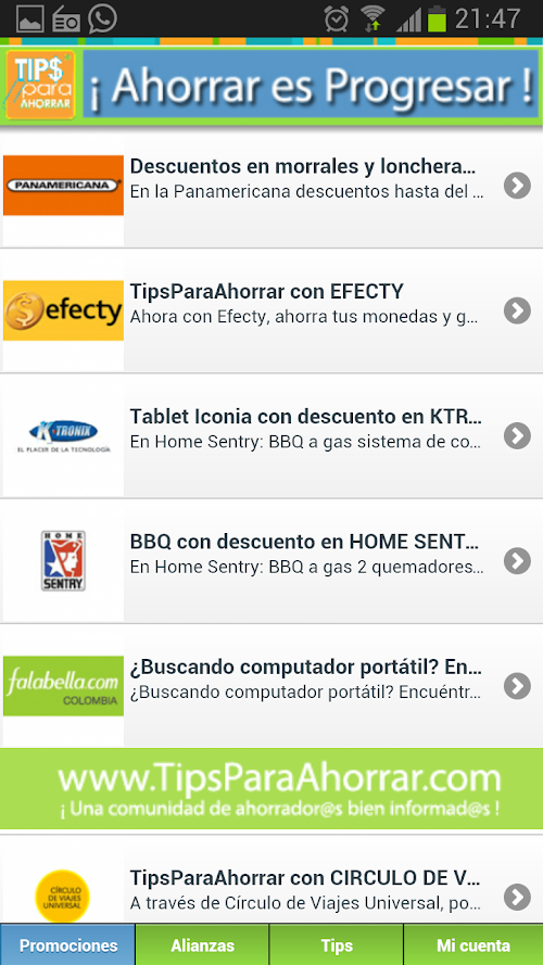 TIP$ es una aplicación con la que podrás estar enterado en todo momento de las mejores promociones, descuentos y oportunidades para ahorrar en Colombia. Adicionalmente podrás ahorrar en cualquier momento del año con los beneficios otorgados por nuestros aliados $ TIP is an application which allows you to be aware at all times of the best promotions, discounts and deals to save on Colombia. Additionally you can save at any time of the year with the benefits provided by our allies
