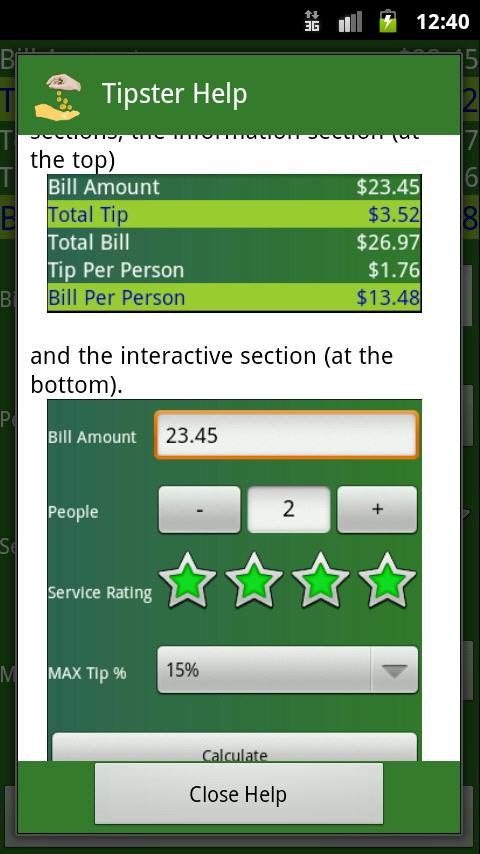 Tipster will help you calculate the tip amount for a restaurant bill.
