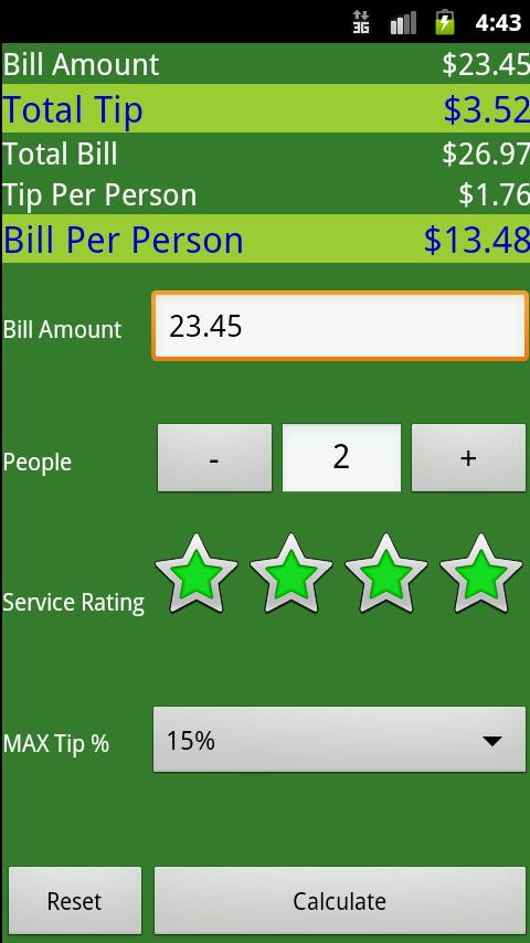 restaurant tip calculator cafe bill percent split pay check calculate total rounding friends powerful breakfast lunch dinner bar diner