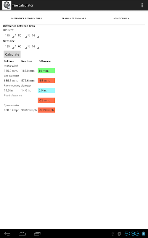 Tire calculator functions:
