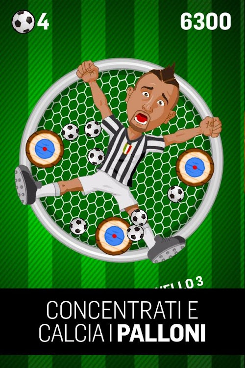 Metti alla prova la tua mira e i tuoi riflessi con questo bizzarro tiro a segno! Lancia i palloni cercando di colpire tutti i bersagli che appariranno sullo schermo ma fai attenzione ad evitare i calciatori bianconeri: ogni volta che li colpirai subirai una penalità.