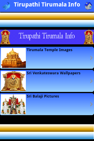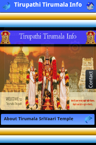 In this application you can find information about Tirupathi Tirumala & The Lord named as Venkateshwara, Balaji, Srinivasa, Malayappa (Father of hill in Tamil), Elumalaiyaan(Lord of seven hills in Tamil), Edukondalavadu (Lord of seven hills in Telugu) and Venkatachalapathy' 'or Venkataramana.