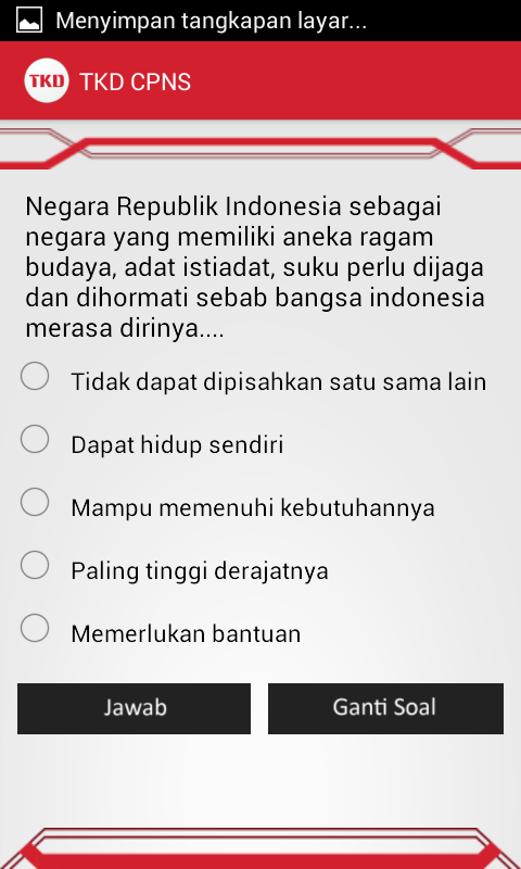 This version of TKD CPNS Android App comes with one universal variant which will work on all the Android devices.