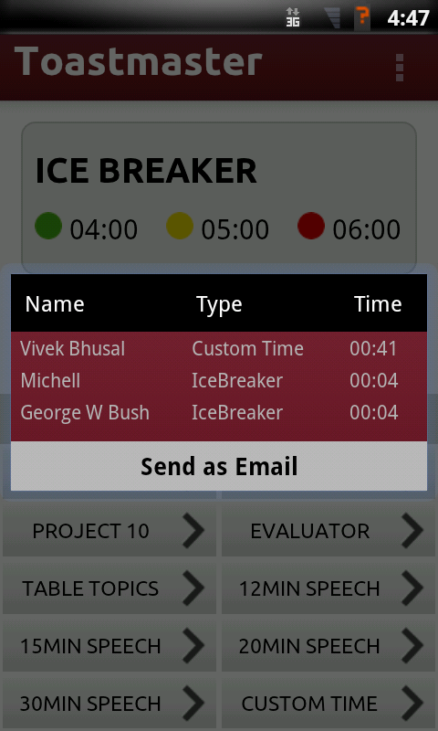 At the end of the meeting, there's a nice report laid out for you in a pleasant format. No more reading the scribbles off a scrap of paper. This app has the feature to record the timing of speaker.