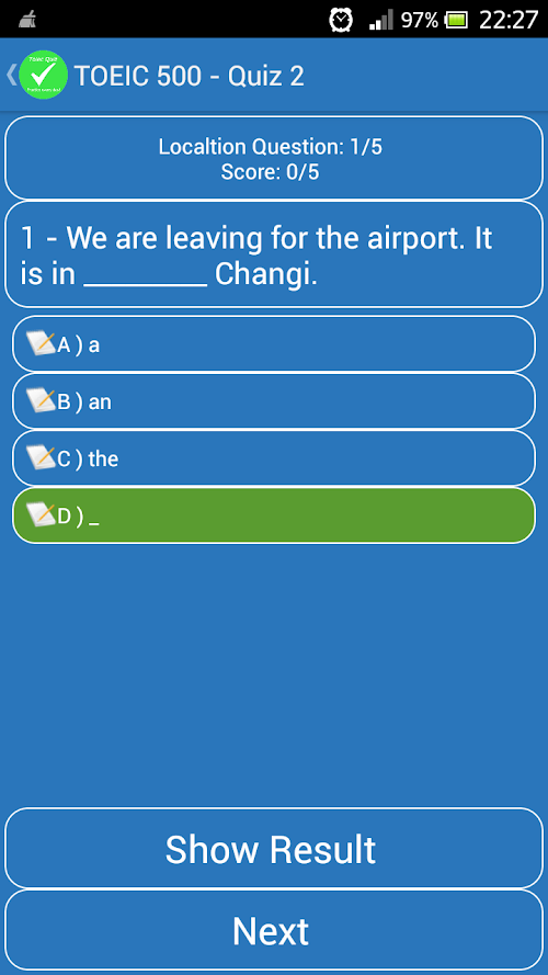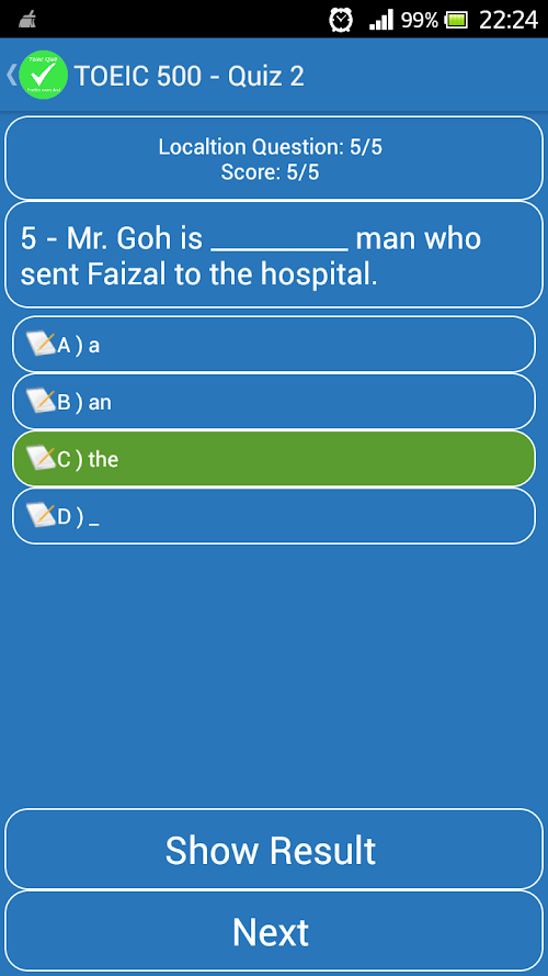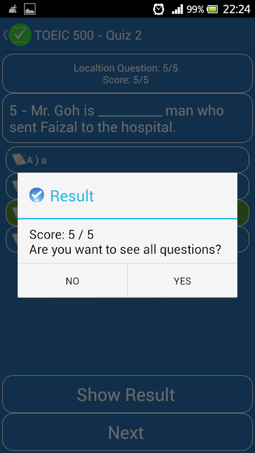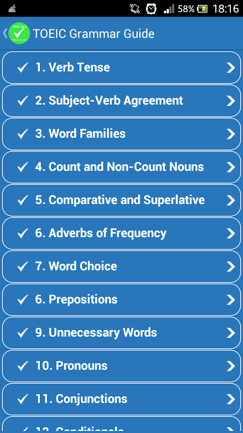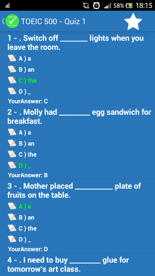 TOEIC Quiz (Grammar & Questions) app is the easiest way to prepare the TOEIC Test.