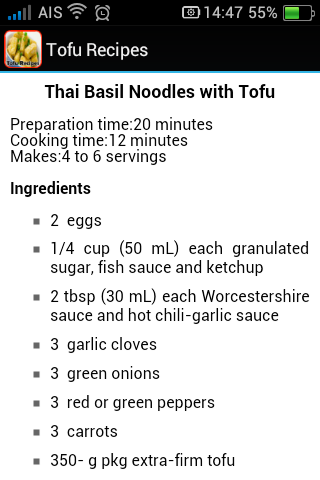 - A lot of healthy recipes information such as sesame-ginger tofu and vegetables,