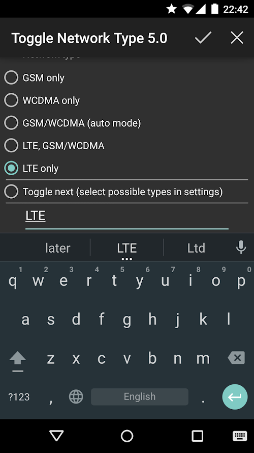 The first and only widget to toggle preferred network type on Android™ 5.0/5.1/6.0/7.0/7.1! With Locale/Tasker support!