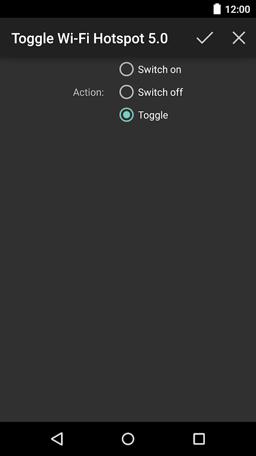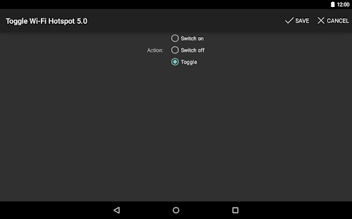The first and only widget to toggle Wi-Fi Hotspot on Android™ 5.0/5.1/6.0! With Locale/Tasker support!