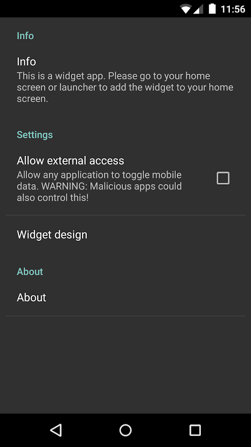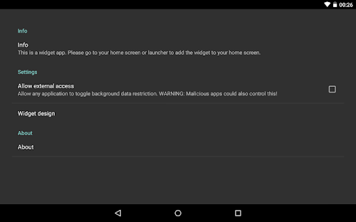 Please note: The widget is passive. Thus, it has to request root every time it is refreshed. Although the battery impact is negligible, this usually results in frequent (Toast) messages indicating that the app was granted root rights. Please refer to your superuser management app if you'd like to disable those messages specifically for this app.