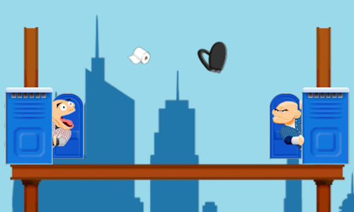 Push the worker sitting in the toilet down the scaffolding. Hurl missiles at the opponent, then throw toilet facilities at his privy. Be careful because your rival has the same arsenal of missiles at hand. Your potty may end up on the street.