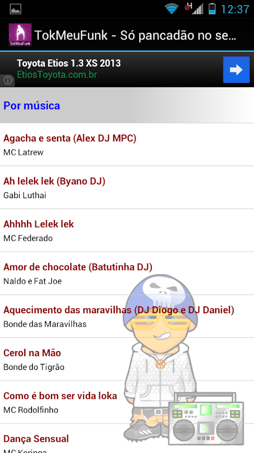 Observação: O aplicativo é gratuito e tem como objetivo divulgar o trabalho de diversos artistas no Brasil e no exterior, sem quaisquer compromissos. Apenas trechos de músicas (máx. 10s) são disponibilizados, não as músicas completas. Para baixar músicas completas, acesse sites como o Funk Neurótico, por exemplo. Prestigie os artistas comprando CDs, DVDs e indo aos shows! TokMeuFunk is the application that only puts pancadões on your mobile! are 229 EXCERPTS of Funks (mostly locals) that you can put as your mobile ringtone or just listen to them whenever you want ! Show Your Friends! We added new music often!