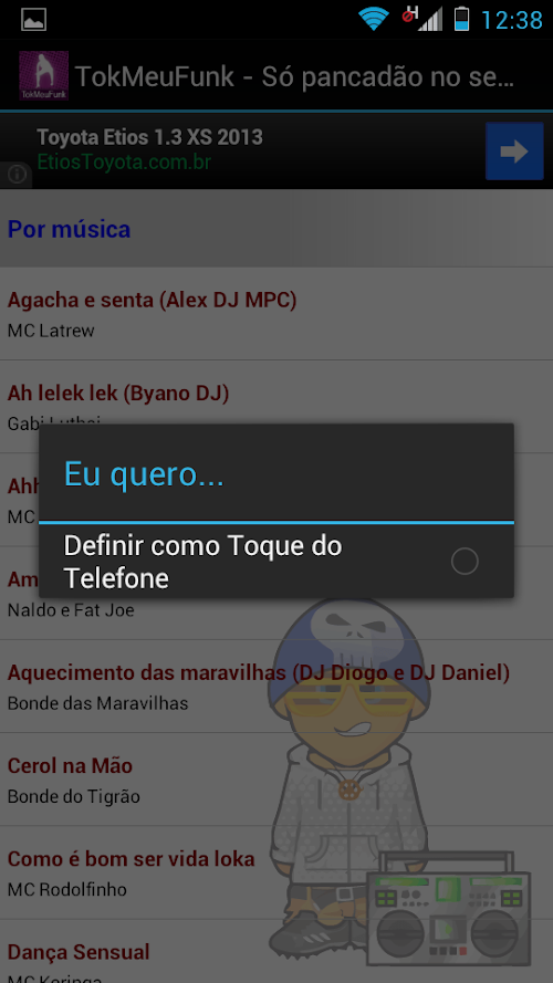 São 229 TRECHOS de funks (principalmente cariocas) que você pode colocar como toque do celular ou simplesmente ouvi-los quando quiser! Mostre aos seus amigos! Adicionamos novas músicas frequentemente!