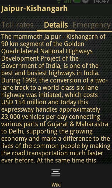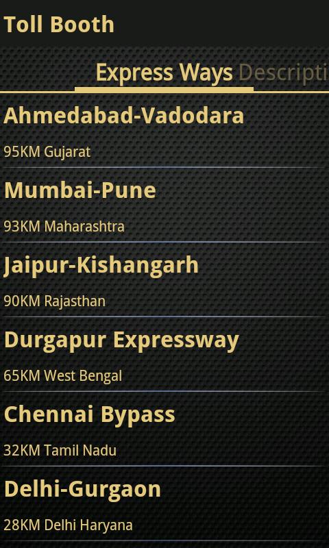 It shows the toll costs for a journey, displays a map with the route and toll plazas. Expressways and toll rate information can be shared with your Facebook friends!