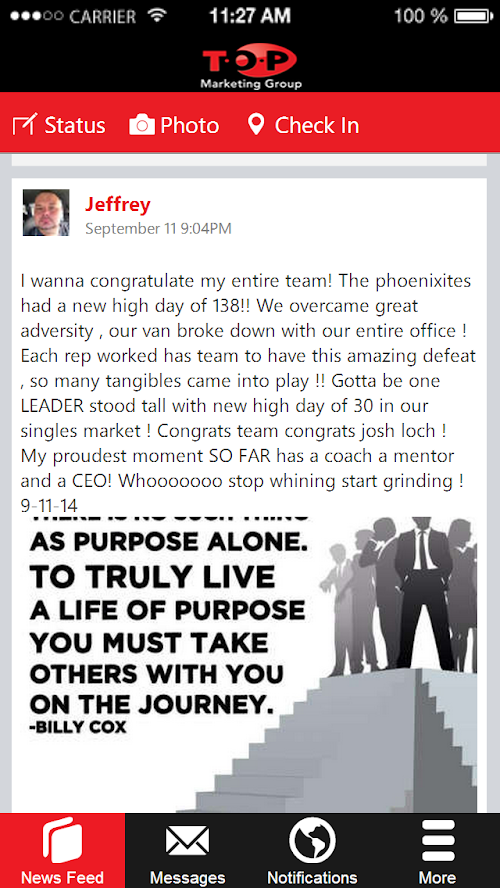 The TOP Marketing mobile app frees you from the chains of your desk by making your office tools portable, enabling you to make decisions faster and more efficient.