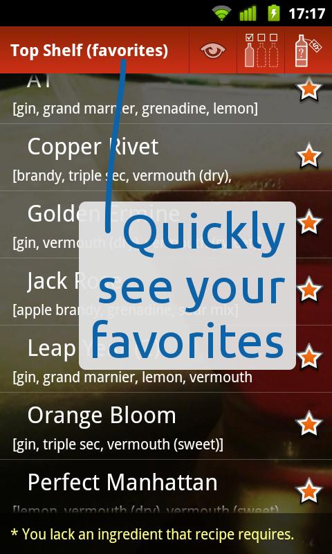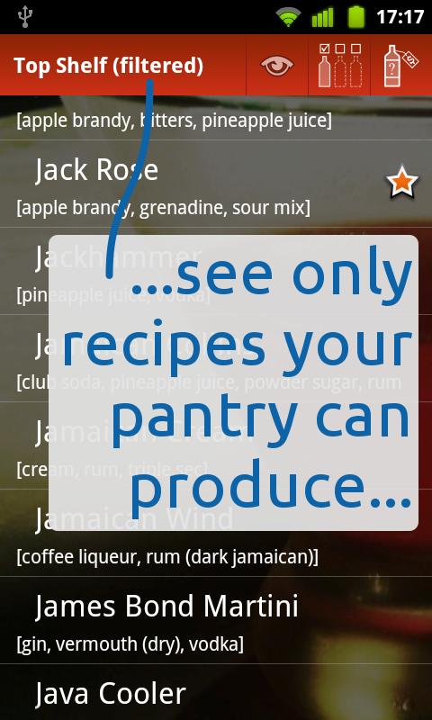 A smart, easy-to-use mixed-drinks app. Perfect for people who are new to mixed drinks, and pro bartenders who want a reference for recipes.