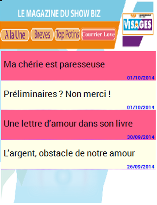 Toutes les infos de Top Visages directement sur votre SMARTPHONE ET TABLETTE Android !