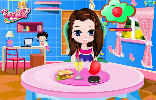 We need to bath and care Tornie girl, for her to feel loved and to be happy. Choose the best bathing shampoos, soaps delicate and fragrant essences. You see how you take better care of it, she will cry and be happy. Also do not forget to help her make dental hygiene. After that she is hungry and you have to feed breakfast, sandwich, apple, crackers and orange juice. Then you will have to play with it with different toys, and then go along with the Torne in her room, and you help her choose a nice outfit. Have fun with this great baby care game