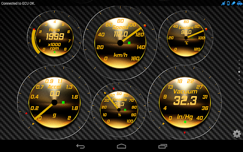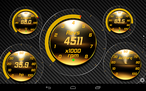 This version of Torque Theme Gold Glass OBD 2 Android App comes with one universal variant which will work on all the Android devices.