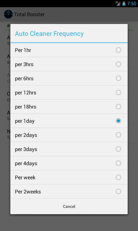 ☆ Automatically clean device in intervals. [Available intervals: 1 hr, 2 hrs, 3 hrs, 6 hrs, 12 hrs, 18 hrs, 1 day, 2 days, 3 days, 4 days, 1 week, 2 weeks]