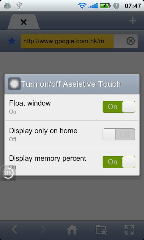 Touch Me is an easy touch button which looks like Assistive Touch on iPhone.
