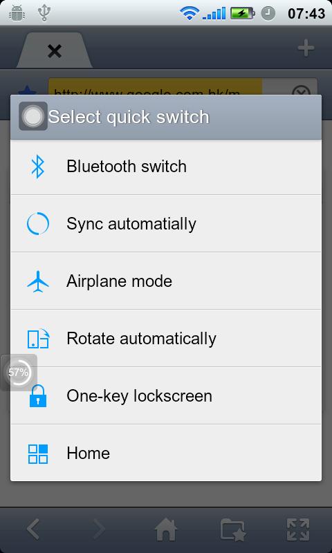 ★ Quick settings(turn on/off Flashlight, Lock Screen, WIFI, APN, GPS, brightness, bluetooth etc.).