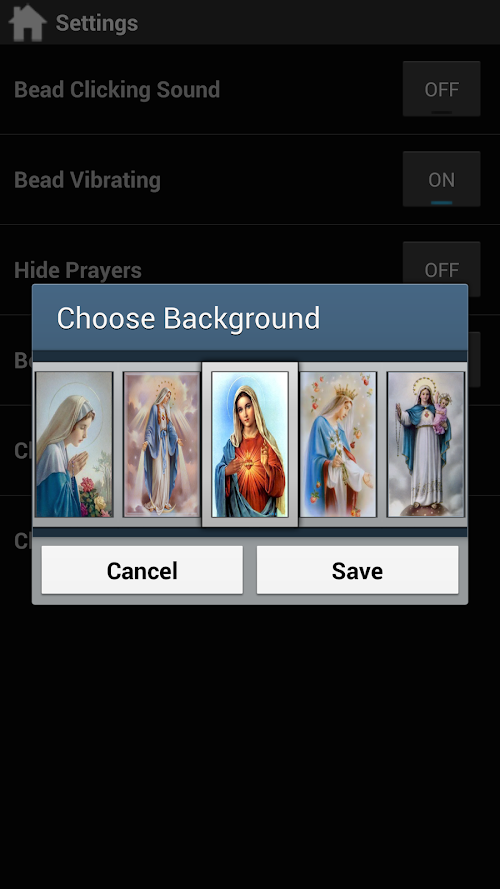 - Various settings to change the font size, background images, locations of the beads, and bead clicking sound and vibration.