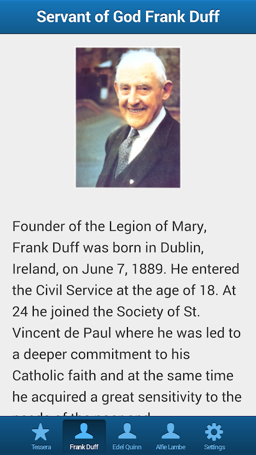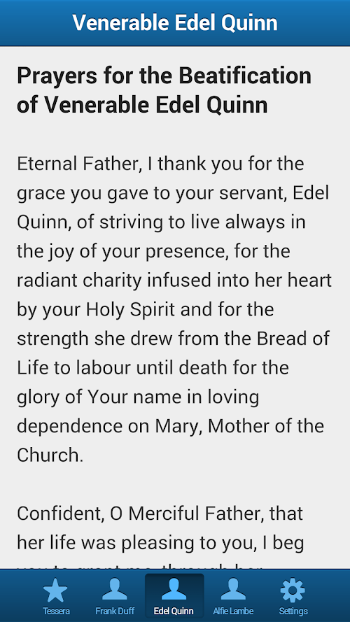 - Contain information and prayers for beatification of Servant of God Frank Duff, Venerable Edel Quinn, and Servant of God Alfie Lambe.
