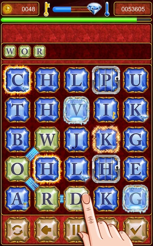 Collect keys to break the letters with locks, use fire to melt the ice and start fire mode to earn more points. Use hints to discover new words. Collect coins and diamonds to boost your game play experience.