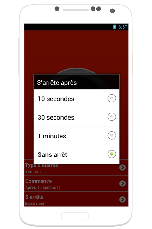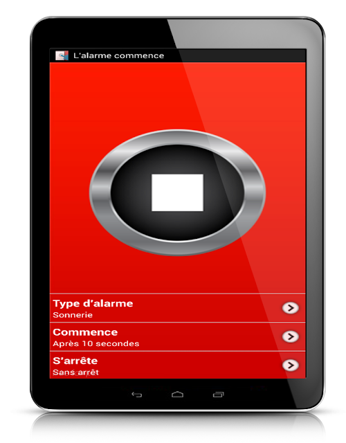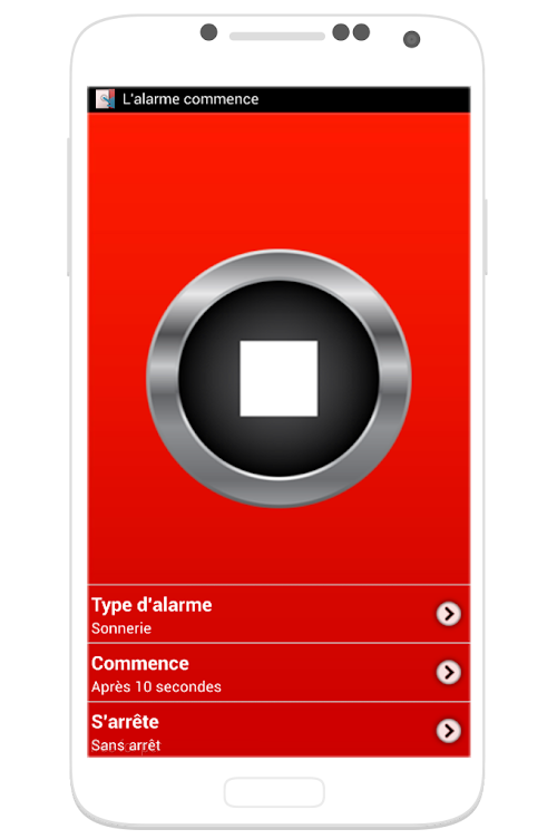 Pour arrêter l'alarme, vous n'avez qu'à déverrouiller le téléphone, accéder à l'application et cliquer sur le bouton (STOP).