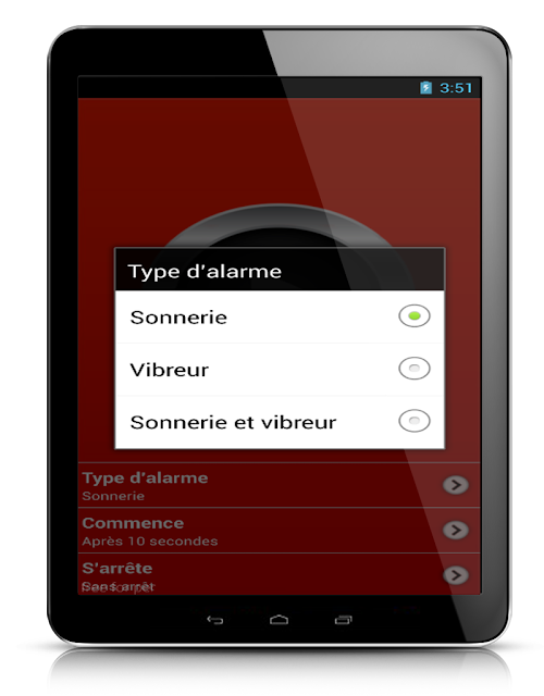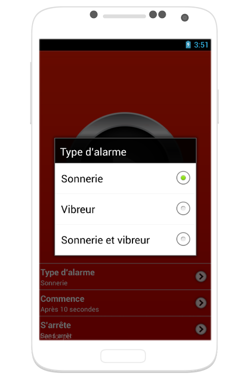 Vous pouvez choisir le type d'alarme que vous voulez, sonnerie, vibration, ou les deux.