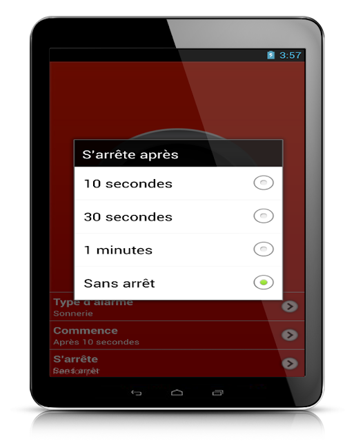 After the adjustment, simply click the button (PLAY) and you have a top message telling you that your alarm has started, you have only to lock the phone.
