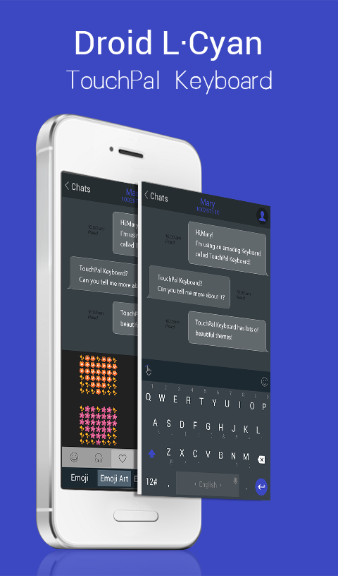 -To activate the Cyan TouchPal Keyboard theme for Droid L, you need TouchPal - Free Emoji Keyboard 5.4.6.1 or above, which is chosen by over 300 million people worldwide.