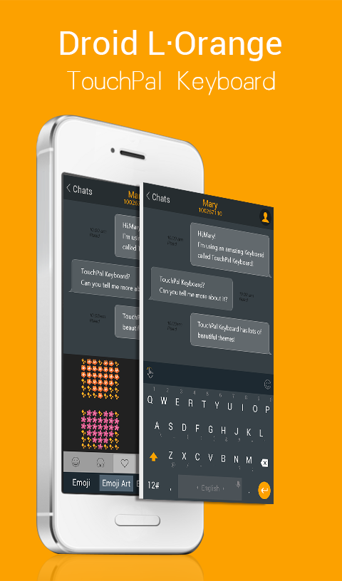 -To activate the Orange TouchPal Keyboard theme for Droid L, you need TouchPal - Free Emoji Keyboard 5.4.6.1 or above, which is chosen by over 300 million people worldwide.