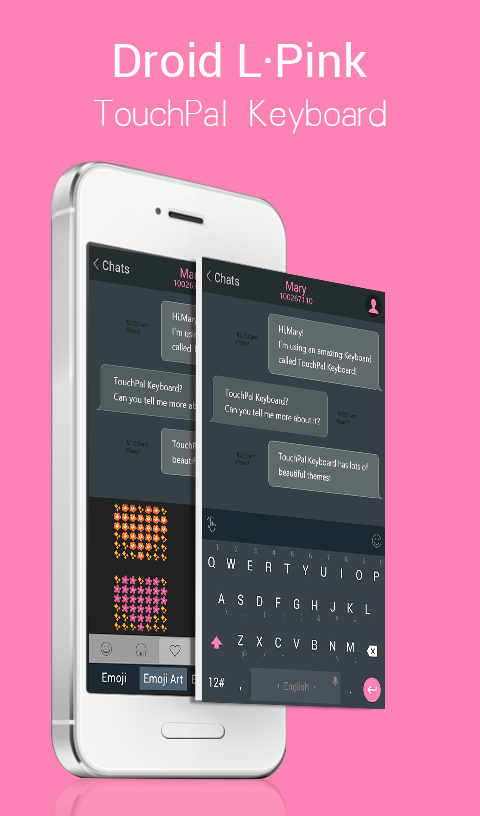 -To activate the Droid L Pink TouchPal Keyboard theme, you need TouchPal Emoji Keyboard 5.4.6.1 or above, which is chosen by over 300 million people worldwide.