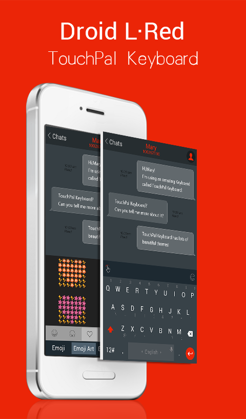 -To activate the Red TouchPal Keyboard theme for Droid L, you need TouchPal - Free Emoji Keyboard 5.4.6.1 or above, which is chosen by over 300 million people worldwide.