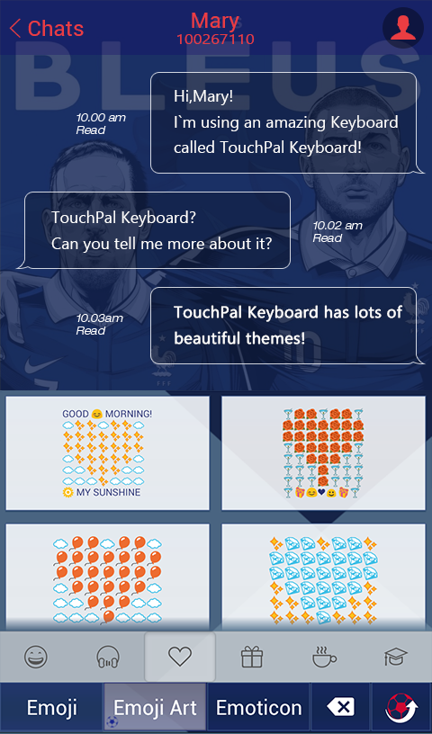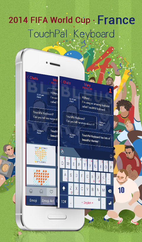 -To activate the France_FIFA TouchPal Keyboard theme for Droid L, you need TouchPal - Free Emoji Keyboard 5.4.6.1 or above, which is chosen by over 300 million people worldwide.