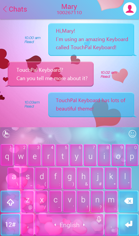 -To activate the Love Heartbeat TouchPal Keyboard theme, you need TouchPal Emoji Keyboard 5.6.8.9 or above, which is chosen by over 300 million people worldwide.