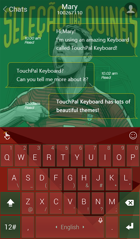 With Portugal_FIFA TouchPal Keyboard theme for Droid L, there is no need to use the featureless default theme as others anymore. A special theme will bring your keyboard a brand new look & feel. Check this FREE personalized design for you right now!