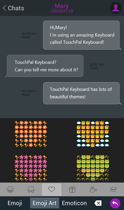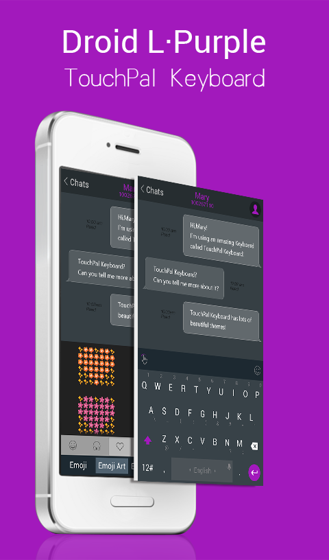 -To activate the Purple TouchPal Keyboard theme for Droid L, you need TouchPal - Free Emoji Keyboard 5.4.6.1 or above, which is chosen by over 300 million people worldwide.