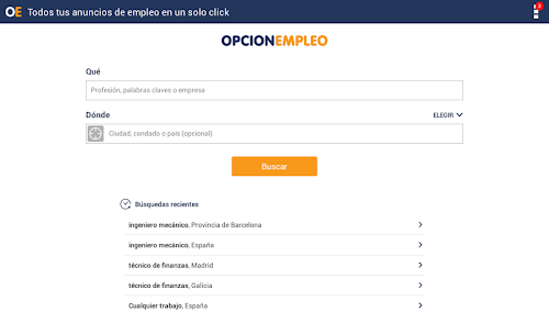 Para buscar trabajo de una forma sencilla y rápida, Opcionempleo cuenta con una interfaz muy simple y fácil de usar. Tendrás acceso a todos los servicios de Opcionempleo tales como subir tu CV, guardar tus búsquedas favoritas y personalizar tus alertas de empleo.