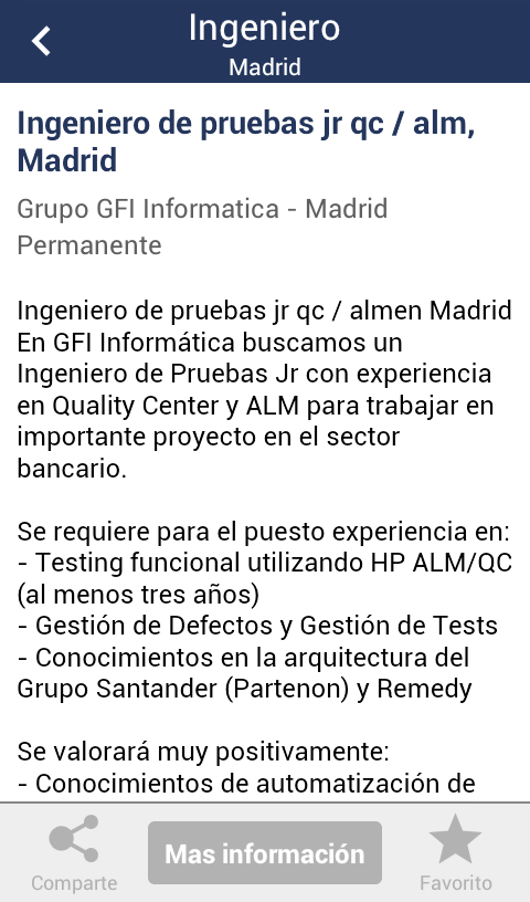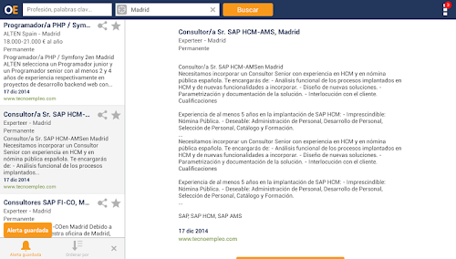 - Buscar anuncios de empleo por medio de palabras claves, ubicación, empresa