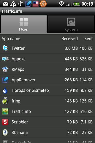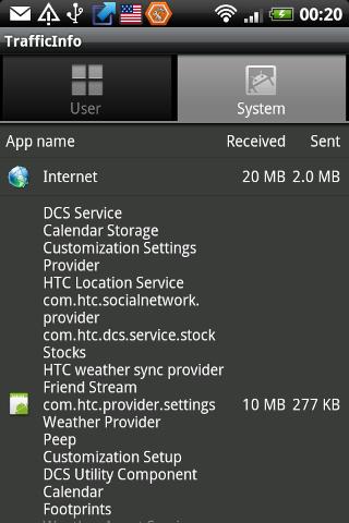 How much they sent and received by application. You can see two tabs for installed and preinstalled system apps.