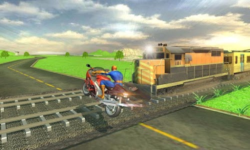 In this game your goal is to ride on your sports bike and drive fast with full speed to reach the destination before time against indian train which is driving with the speed of euro trains. Eye catching environments will boost your excitement and adventure in train vs super spider bike hero racing games. So install this new crazy bike vs train racing game and enjoy the adventures race with train in different city environments and mountain environments. In this train racing vs super bike spider game there are many challenging levels which are almost impossible to clear but you can try to win racing against driving train and show some fun with your crazy super bike drifting skills. Use your best driving skills and win the most challenging & adventurous race.