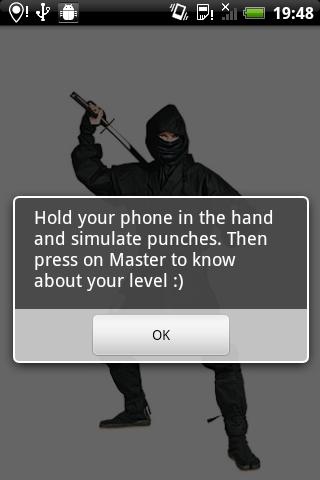 Just hold the phone in your hand and kick imaginary opponent, then press on Ninja on the screen to know his opinion about your level.