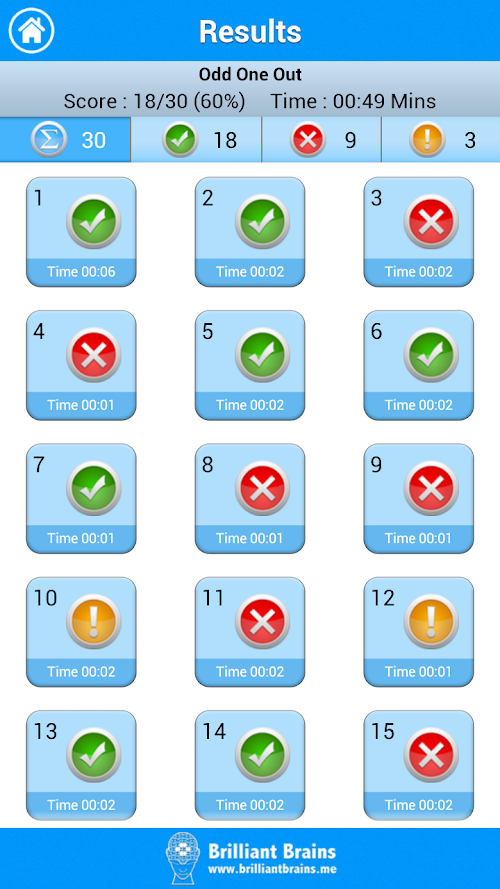 On the completion of each test the user is given a summary of questions answered correctly, incorrectly and skipped along with the time taken on each question. Every question can be reviewed and all questions have an explanation of the answer.