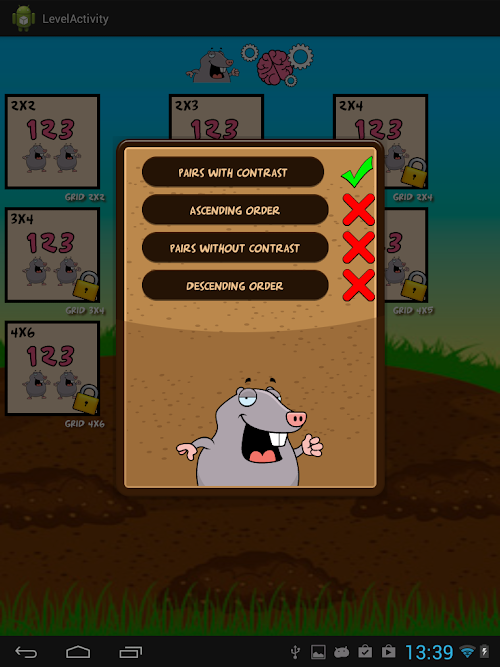 In the early levels just need to memorize the images of 4 squares , as the game develops need to memorize up to 24 images. The games are : open squares in pairs of images and open boxes in ascending and descending numerical order .