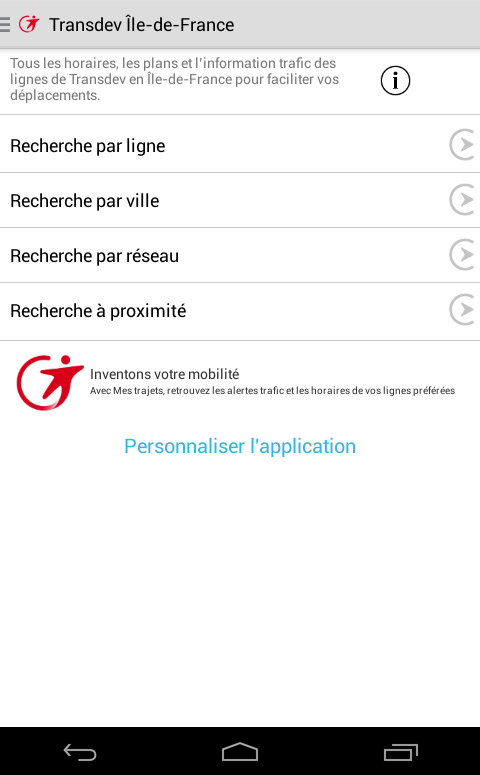 Dernière version mise à jour de l'ancienne application, retrouvez la nouvelle application Transdev idf ici : https://play.google.com/store/apps/details?id=com.transdevidf.android Last updated version of the old application, find the new application Transdev idf here: https://play.google.com/store/apps/details?id=com.transdevidf.android
